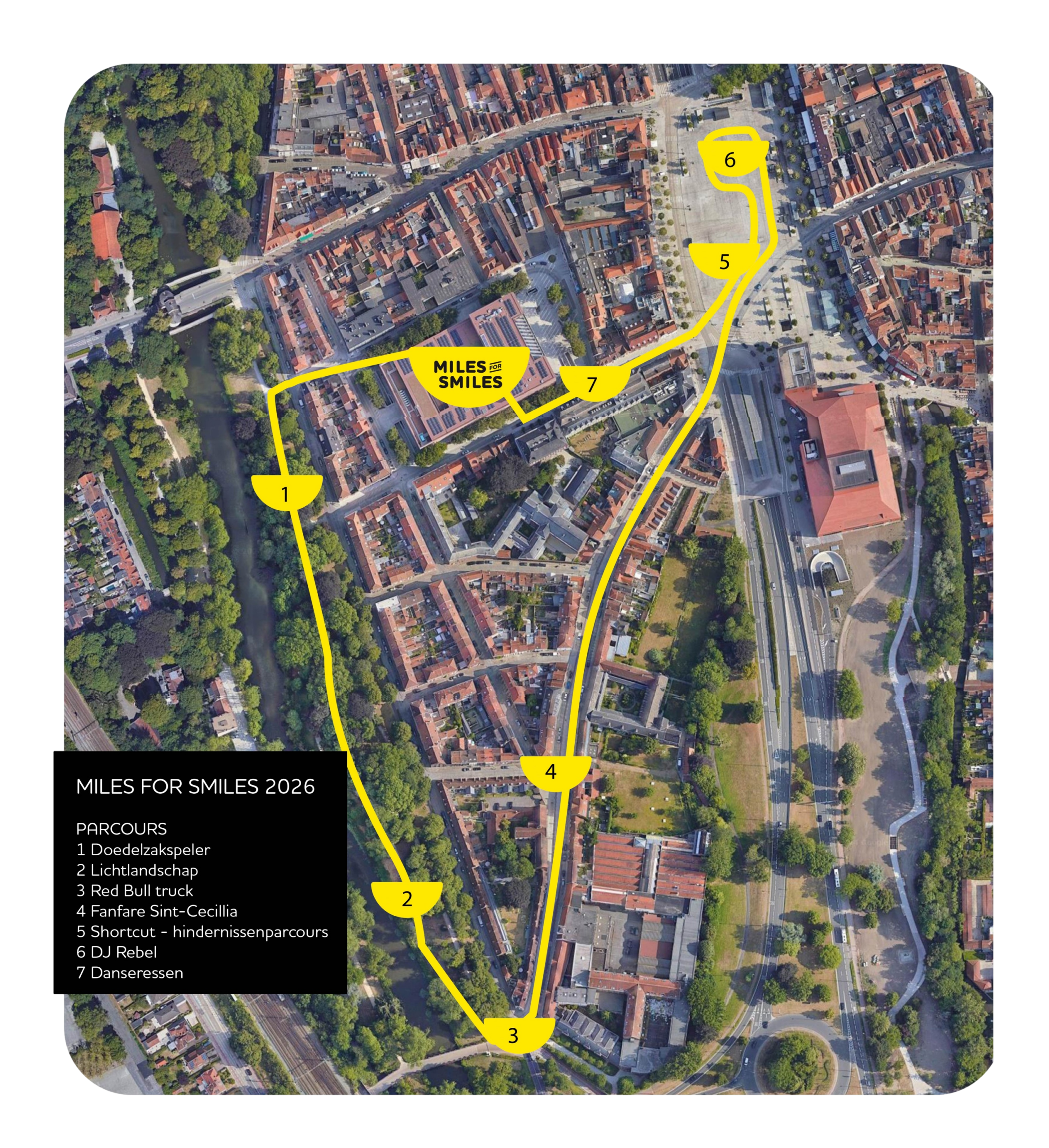 Miles for Smiles brengt sport, sfeer en solidariteit samen in één uniek event. Teams van maximaal vier lopers lopen afwisselend rondjes van één mile (1,6 km) en proberen samen zoveel mogelijk miles af te leggen.